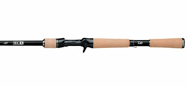 These rods are the culmination of years of fishing rod development and the latest in Daiwa Rod Technologies. A Complete Renewal of the Classic Black Label line, the rods are designed and constructed with 2 Different concepts in mind, sensitive and limber. The SG  or Sensitive Graphite models are well suited for worms, jigs and dropshot. Techniques that demand sensitivity, feel and a quicker action. The LG or Limber Graphite models are designed for crank baits, soft jerk baits and stick baits. The limber bend utilizes a blank formulation that has the properties and strength of fiberglass without the traditional size and weight. This Nanoplus HVF Carbon Technology reinforces the blank through a micro-level arrangement of material in the plastic resin. This creates a smaller, lighter, more rigid blank. The 3DX Honeycomb Structure of the blank enhances compression with a high recovering force balanced in 360°. The X-45 Bias Construction has greater strength and prevents twisting for more precise casting. No expense is spared with the Fuji SIC Guides, state of the art in the industry. The Brand New Shaped Reel Seat is streamlined and holds the reel fast and secure. The Quality Natural Cork Handle provides a firm, solid grip on the rod. If you want to see the best rod that Daiwa engineers can produce, then put the newly redesigned BLX® JDM BASS RODS in your hand.