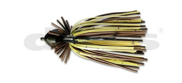 The Deps Violator Jig is designed with a unique up-turned triangle head that enhances the penetration force through cover. The line eye located at the tip of the head, combined with the head shape that concentrates the center of gravity, smoothly penetrates the cover and easily slips through weeds. The combination of tying extra-thick round rubber and silicone skirts creates a unique flare due to the different material properties. The short-cut round rubber around the head generates tingling and tight vibes like the gill of crustaceans that tremble in a flurry and generates waves.Â
