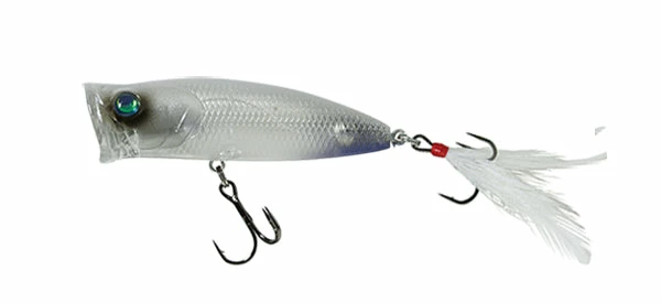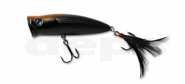 The Deps Pulse Cod is built with a spring weight micro vibe system- a weighted spring mounted inside the body that creates a high pitch “pulse” as the weight trembles in the currents, even when holding still. The flat cup shape of the mouth with bulges on the sides improves straightness and helps the bait float completely horizontal while still, and helps to create the popping splash as it pushes water when it moves across the surface.