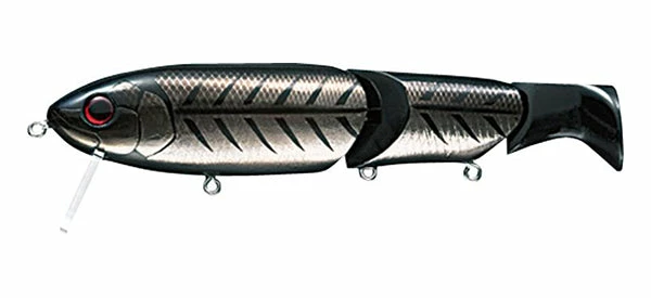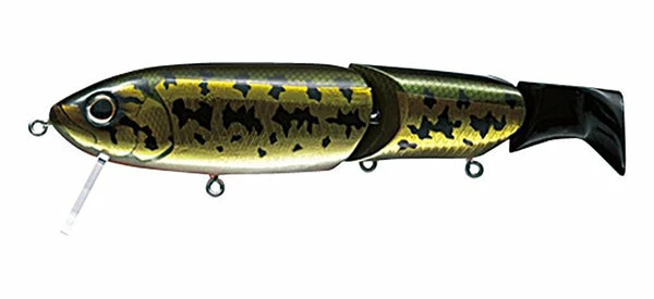The Evergreen USAQ Noisy Dachs (ND) 180 is a wooden wakebait, offering hand crafted Japanese construction with two joints. Designed to float high in the water column, the ND-180 give a natural glide while the hard jointed tail delivered an enticing clack as it moved along. An oversized bill allows it to deflect cover with ease and dive below the surface on a fast retrieve.