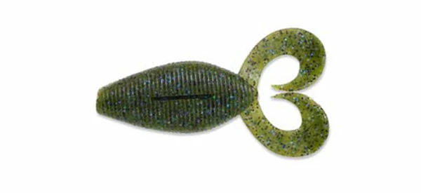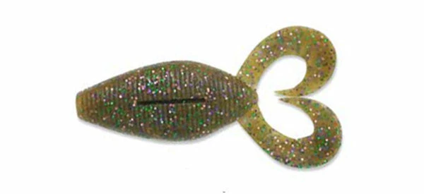 The Geecrack Spiron Twin was designed to mimic a bluegill. Â The flat body design creates a unique gliding action when rigged weedless, and the twin grub tails on the back increase in thickness as they move away from the body, giving them a completely new kicking action. Â The Spiron Twin is a great bait to fish on its own or as a jig trailer. Â The Spiron Twin is made from Geecrack’s famous S.A.F. plastic which is highly salted and flavored to help entice the fish to hold on longer.