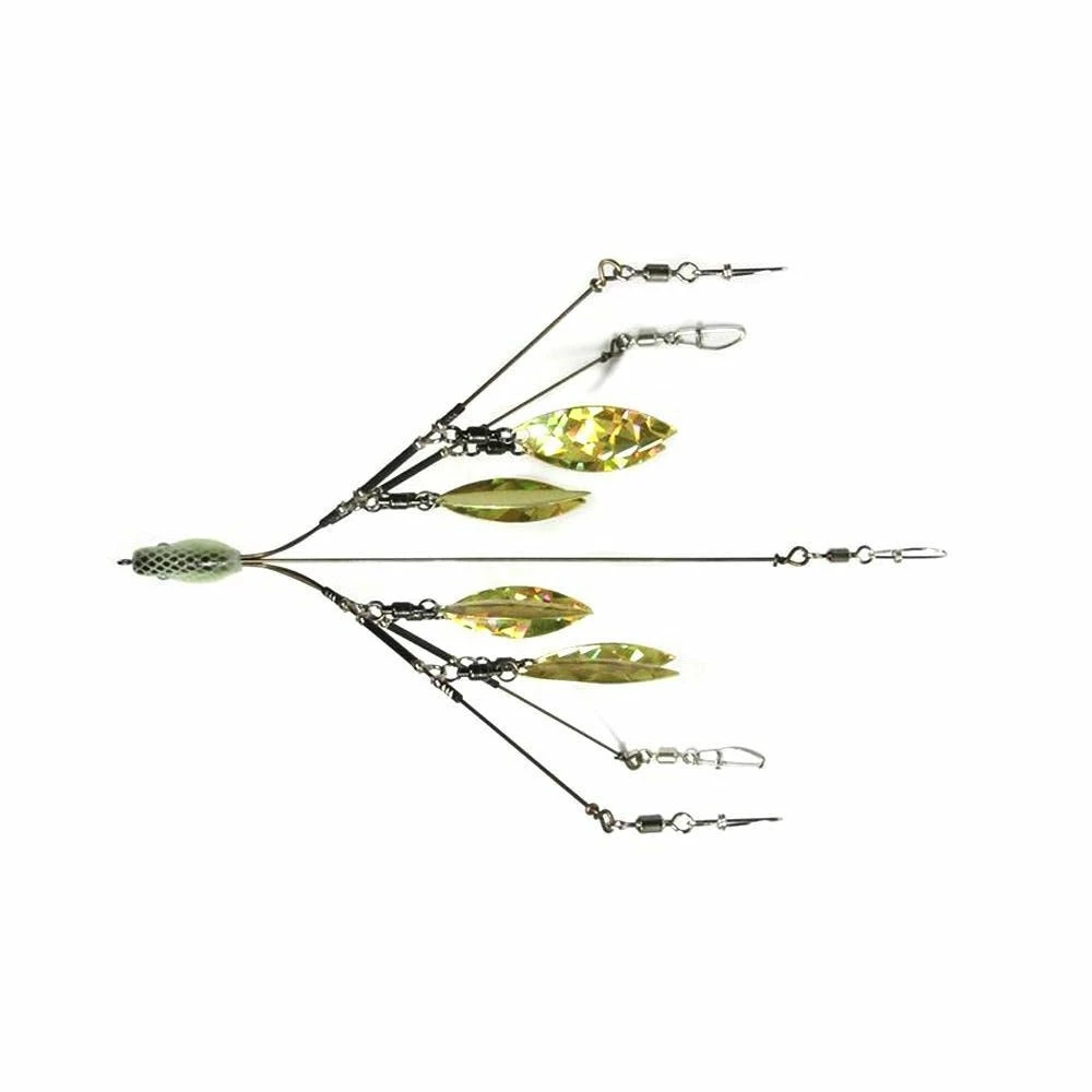The HogFarmer’s 5-arm rig is a must have for A-rig fishing. Made from heavy-gauge wire, this rig is built to withstand the punishment of holding multiple large fish. This rig comes with 80-lb safety swivel snaps on each arm and your choice of no blades, 4 blades, or 8 blades depending on your needs. Available in the original 5.75 inch and the mini 5 inch versions.Â