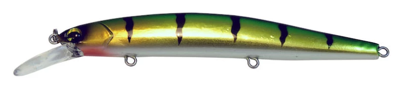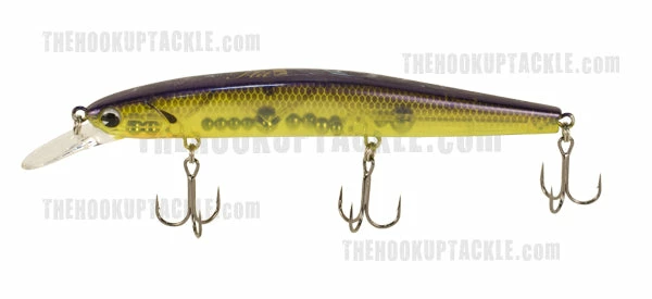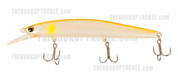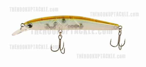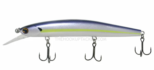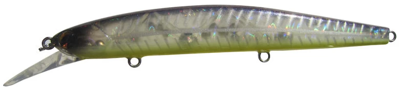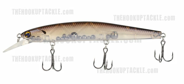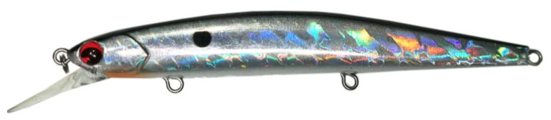The Ima Flit is a flat-sided minnow lure designed with a wider back and forward-pointing skinnier bill compared to other jerk baits. The angle of the sides is built to reflect light downward, in the direction in which a strike will most likely occur, while the triangular internal chamber system maximizes sound with high bitch bbs that rattle consistently- overall creating a natural baitfish appeal such as a herring or threadfin shad.