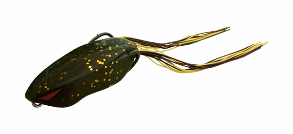 The Imakatsu Boota Frog is a finely designed frog that walks with ease while giving a slight pop.  The Boota Frog turns on itself similar to a pencil popper, capable of 180 degree turns so it can stay in the strike zone longer.  A special reverse barb frog hook ensures perfect hook sets, and the Boota Frog features a mounted balancing weight that can be customized by adding rattles or blades.