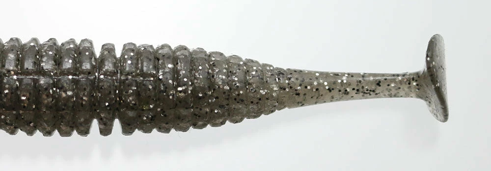 A new type of shad tail worm with a flat body that produces a powerful wobbling and swings at a high pitch. Innumerable block-shaped ribs are arranged on the body, which has the effect of generating a complicated turbulent water flow and at the same time making it difficult to be cut off by a threaded bass. Evolving from the “trailer assemble model” that was released in advance, stable swimming has become possible while maintaining powerful tail action even in no sinkers and nail rigs with offset hooks. Of course, even in the trailer of rubber jig, swimming with jig head, etc., the overwhelming appeal power attracts the bass.