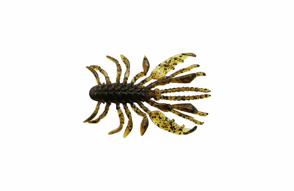 A shell-type worm designed with the concept of “all-legged independent spontaneous action”. When falling or slurping at the bottom, the eight pairs of legs that have been exposed to the water flow sway in a staggering manner, creating a multi-legged creature. It attracts fish with all kinds of rigs such as root fish ball black, no sinker, light Texas, jig head and so on.