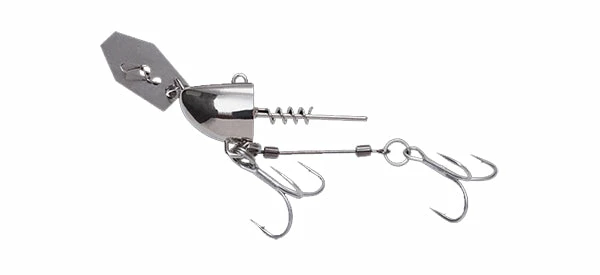A unique way to present deep fish a chatterbait style soft plastic bait, the Bottom Slash Plus head can fit your favorite swimbait or fluke style bait for a totally unique presentation. Â Hooks can be arranged on the bottom of the bait for when burning or fishing higher in the column, or they can be moved to the top of the bait for dragging on the bottom. Â Available in 3 sizes.