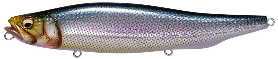 MEGADOG is a special weapon for the monster bass which raised the potential of DOG-X to the level of different dimensions, a masterpiece of Megabass’s boasting rare art. Assuming a huge bass that drives big baitfish into the water surface and corners it, it is equipped with a strong impact and appeal power that transcends common sense categories. In addition, although it is big size, pulling resistance is extremely light, setting which can produce slide action which bait escapes only by reeling alleviates the burden of angler. It is a mega-sized pencil bait where you can fully enjoy the real pleasure of big-bait and top-water games.