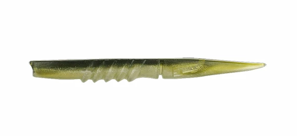 The SUPER XLAYER is a snag less jerk bait that works great for spinning or stress free casting with a baitcaster. The ribs are designed facing away from the direction of movement, creating unusual waves, and giving added dynamism to the lure’s movements. This is especially noticeable during stop & go rod work where the pause in between is very pronounced. If you set an offset hook angled upward and then twitch,  you get dynamic underwater dog walking. If set straight, it performs great as a so sinker dead sticking minnow. It’s also great set up with a 1/32-1/16oz. jig head for twitching in weed bottoms. You will feel the excellent performance of the SUPER XLAYER when facing neutral fish amidst heavy cover.