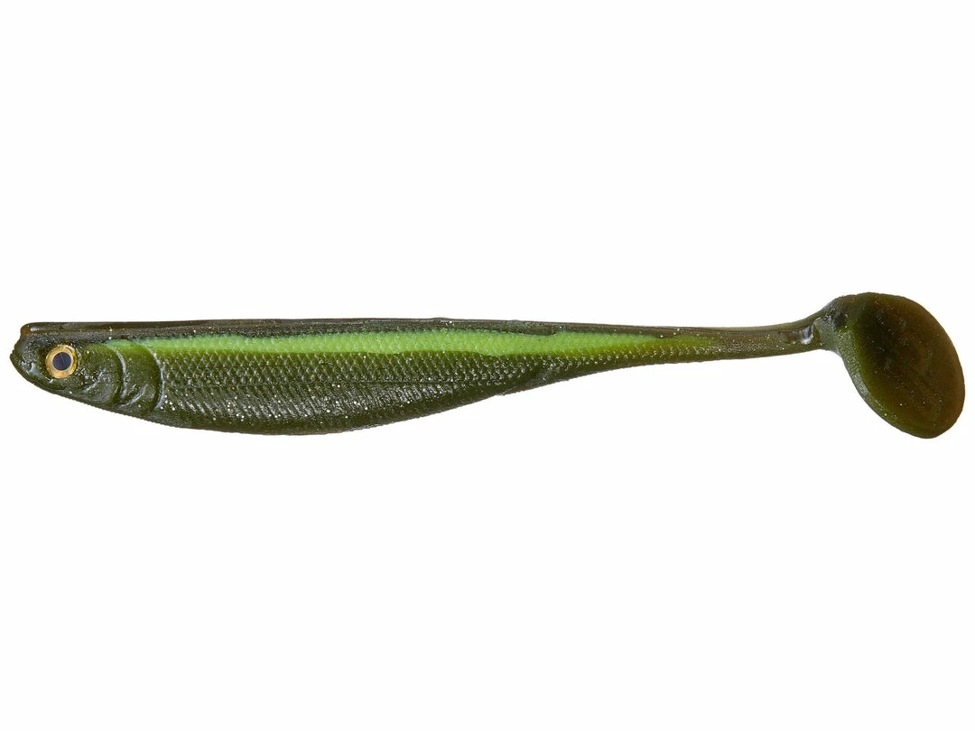 What separates the innovative Opti Shad from other soft swim baits is a minor expansion located in the middle of the lure. Unlike traditional shad tail style artificials the deepest part of the Opti Shad body is also the widest part of its body. This key formula ensures superior hydrodynamic performance in a multitude of applications as well as fluctuating retrieval speeds. As water flows past the lures sides the slight center bulge encourages an attractive body roll and at the same time water is directed down the tapered back to the tail causing a rhythmic kicking motion even when retrieved extra slowly. United, these naturalized actions perfectly capture the frantic and irregular behavior of a baitfish in distress.