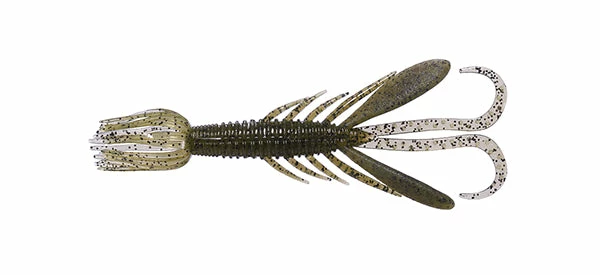 The OSP Dolive Hog was born to be the bite enticing standard of hog style baits; so much action is built into its compact body. Long paddles at the head of the bait displace water as it moves for a natural action in the water. Two different sized legs along the body move at different rhythms due to weight and thickness, creating a lifelike appeal. Hula skirt flares out for a unique jig-like profile. Available in an assortment of bite inducing colors- the Dolive hog is sure to entice!