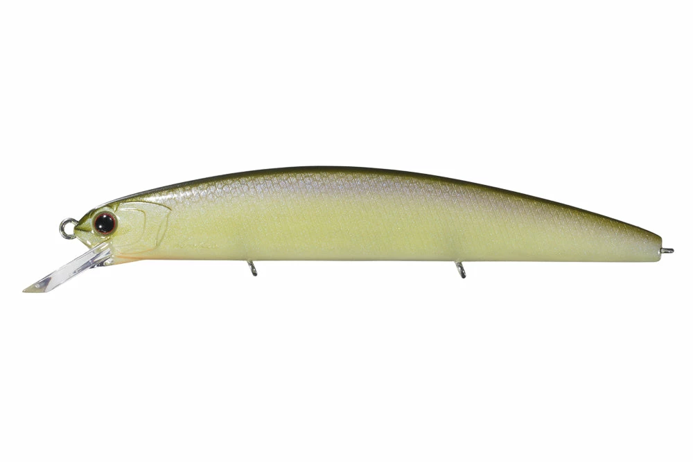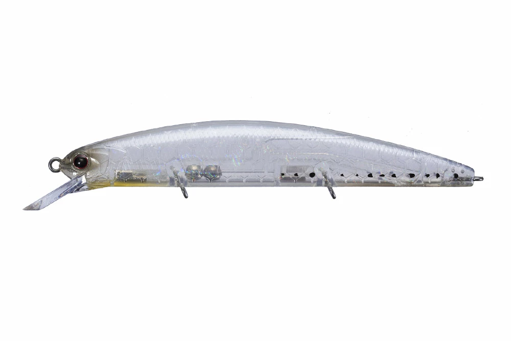 The Varuna 110F is a flat side concept minnow that creates more flashing effect and water drive than round body minnow. The small-diameter triple tungsten center of gravity movement allows the weight to reach near the tail, achieving accuracy and long cast performance with a stable flight attitude. This also contributes to the unique sound and lowering of the center of gravity of the weight, and by fusing with the Honeycomb Super HP body (PAT.), Which is both lightweight and strong, it has a high response and a good start and go action, even on a straight retrieve.