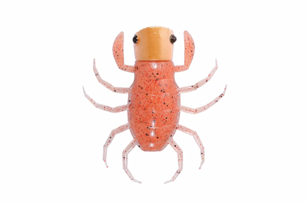 Sweet pop sound and splash generated by cup-shaped head elicits bass from deep range or far back in cover where small silhouette bug lure was never able to show its existence. Upward arms make on-the-spot temptation easy and reproduce drowning bug. The four pairs of legs float on the water surface, and generate a complex ripples even by a slight shaking. 2 brush guards are the result of consideration of heavy cover fishing and it is arranged straight vertical so when you cut one of them it still guards the centerline of the hook. Downward line eye and hook has the best hooking ability. That’s Orikane’s conclusion after he tested every kind of hooking pattern. It demonstrates amazing power under high pressure condition or against visible bass. It is not limited to the field where bug is the main bait.