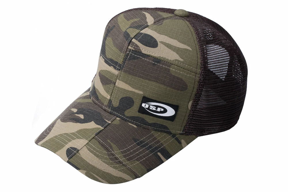 OSP standard type cap-The feature of this model is that it has a sewn (patchwork) pattern. Type2 uses a duck pattern fabric for the body and has an adventurous finish with an OSP tag on the front as a one-point accent. In addition, the OSP cap features a black fabric on the inside of the brim to suppress diffused reflection of light.