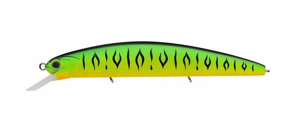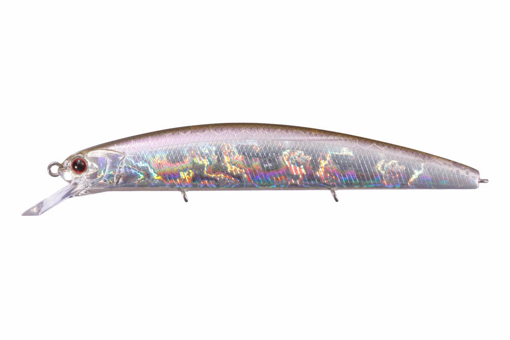 The Varuna 110SP is a flat side concept minnow that creates more flashing effect and water drive than round body minnow. The small-diameter triple tungsten center of gravity movement allows the weight to reach near the tail, achieving accuracy and long cast performance with a stable flight attitude. This also contributes to the unique sound and lowering of the center of gravity of the weight, and by fusing with the Honeycomb Super HP body (PAT.), Which is both lightweight and strong, it has a high response and a good start and go action, even on a straight retrieve.