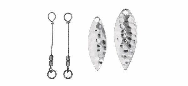 The Owner Flashy Swimmer Kits are Arm and Blade replacements for Owner’s ever-popular Flashy Swimmer hooks. Available with 2 Shafts per Kit and comes with Silver Willow Leaf Blades or Gold Colorado blades offered in several different sizes.