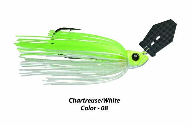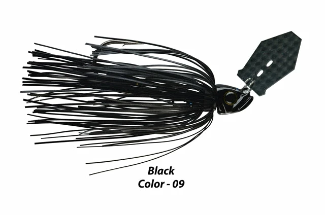 The Shock Blade Carbon Fiber Series elevates your vibrating jig performance to a new level. The blade is manufactured from Carbon Fiber, a cutting-edge space-age material that is lightweight, super strong, and used in specialized, high-performance products such as race cars and aircraft. Picasso’s unique downsized coffin shape ‘lightning blade” provides a super-fast, tight swimming action with an intense rapid fish attracting vibration. With the smallest turn of your reel handle the blade responds almost instantly and the action begins. Constructed around Picasso’s popular Smart Mouth Plus jig head with its concave belly that gives an added “wobble” action that fish can’t resist. The double bait keeper, one on the collar and a wire barb on the hook shaft prevents slippage and will keep your soft plastic secure cast after cast. Equipped with a super-strong 3X Strong Mustad Ultra Point Hook that assures good hook penetration that will not open on the set and can handle big fish. The super-soft silicone skirt material creates fish-attracting undulation that is comparable to living rubber material.