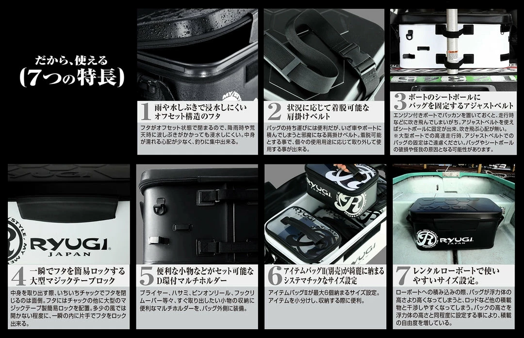 A large functional tackle bag that has been thoroughly considered for use in boats and bags. A tackle storage bag that is indispensable for anglers. The bag must be easy to use and provide good tackle protection. Assuming every case from the angler’s point of view, we considered the usability. As a storage case for loading luggage into the car when bobbing. As a tackle box for loading and unloading luggage compactly when low boating.