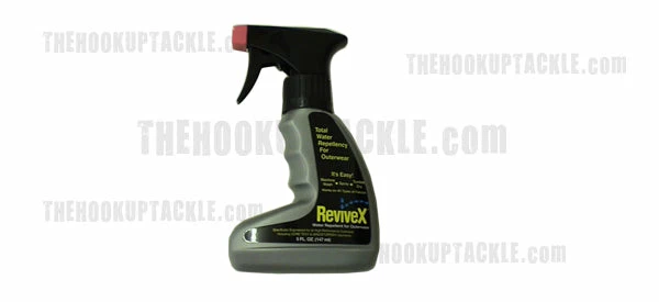 Simms Revivex is a spray on water repellent designed to replenish the water repellency of any rain gear. Â Revivex is perfect on Gore-Tex, or any other waterproof material.