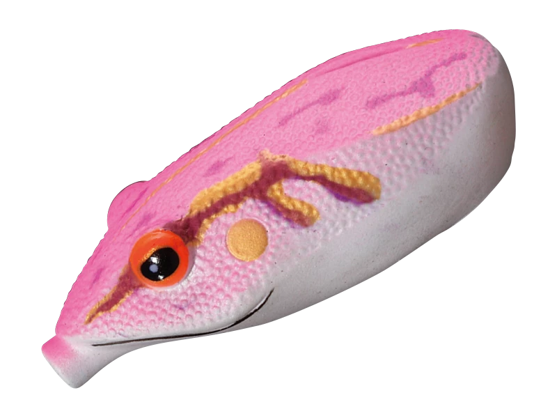 Potofu frogs are compact body frogs weighted and tuned, and ready to throw right out of the box. Cast them on to lily pads, heavy weeds, and fish will bite on them with big splash. A single strong hook penetrates easily while a blade on the back creates a little extra noise and flash.Â