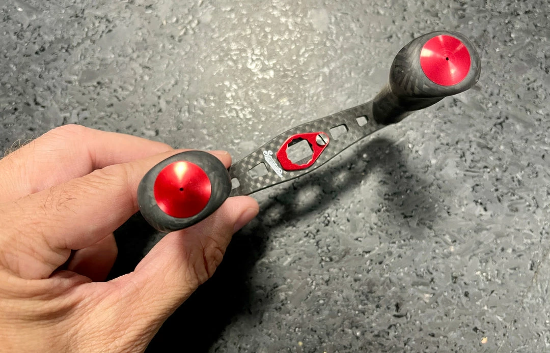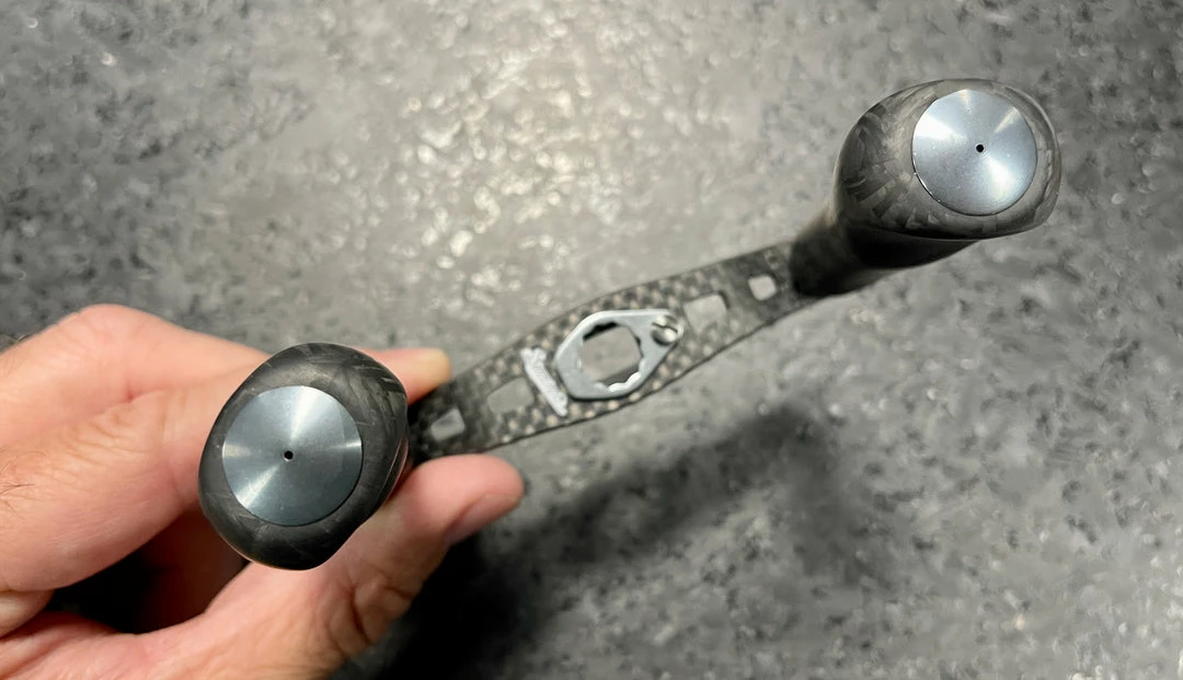 Studio Composite created the CQC series to for anglers aiming for higher performance and versatility from their gear. These handle were designed with sensitivity and torque in mind for lower gear ratio reels. Its flattened paddle-style carbon knobs allow for positive gripping force and comfort in hand.