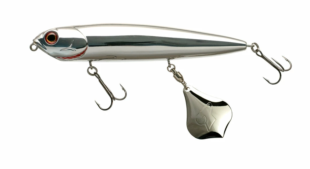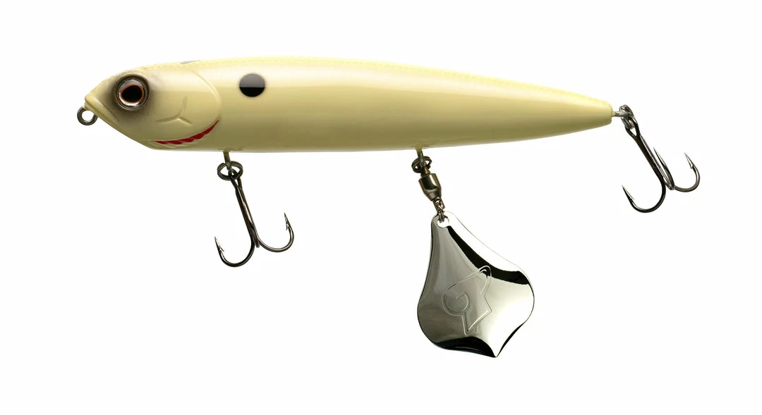Teckel is always looking to innovate, and the latest topwater innovation from Japan has arrived! Â Introducing, the Goodpecker! Â The Goodpecker features a Kicknocker shaped body with a new internal weight system. Â When combined with the custom designed blade underneath the body, the Goodpecker because part walking bait, part plopper, and part prop bait. Â When retrieved at a steady retrieve, the Goodpecker rocks side to side while the blade spins and hits the side of the bait with a totally unique fish attracting knock. Â It’s a completely new look that the fish have never seen, or heard before!