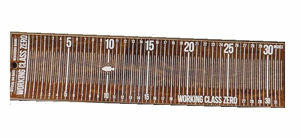The Working Class Zero Limited Edition Big Bass Measuring Board lays one 7 ply Canadian Maple that is slow pressed in a custom mold, creating a concave shape to cradle giant bass. Topped with a detailed 32 inch scale, the water resistant coating ensures a long use-life and it’s size fits any almost every rod locker. Made in the United States, limited time only.