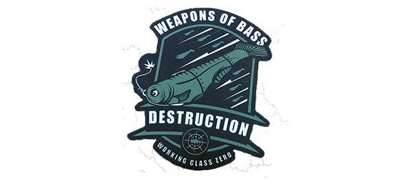 Show no mercy! Working class zero holds nothing back when it comes to big bass. Show your support and enthusiasm with their Weapons of Bass Destruction sticker decal. Put it on your boat, the windshield of your car, or your tackle box.